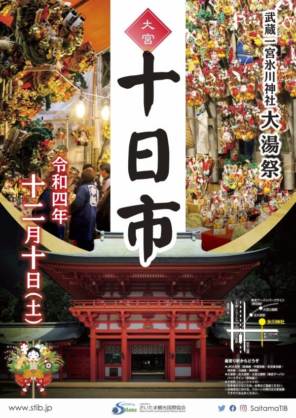 ・御札と福熊手の授与が、10日の0時から1時まで及び7時30分から22時まで行われます。